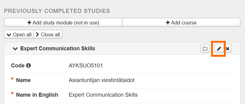 If your previous studies / other prior learning and the courses in your PSP have not been added correctly to different application parts (e.g. you have added to a single application part all your previous studies and all the different courses from your PSP that you are seeking to replace), your credit transfer cannot be recorded correctly even if your application could otherwise be approved in terms of its content.