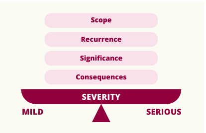 The severity of RI violations is assessed on a case-by-case basis, taking into account the practices and traditions of the research discipline in question. Since it is difficult to verify the intentions of activities, the evaluation is carried out from the perspective of the harm caused to the scientific community. Examples of factors that may be taken into account in the evaluation are shown in the diagram (RI Guidelines 2023, 16-17).