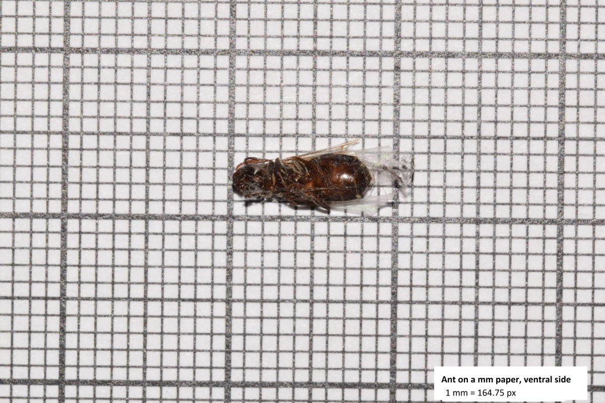 Body of a dead ant photographed with a DSLR camera on top of graph paper. Photo: Sami Vuori.