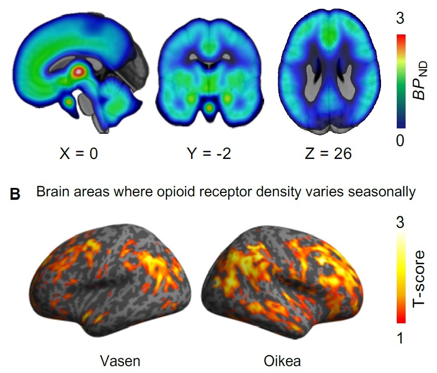 – On the basis of the results, the duration of daylight is a particularly critical factor in the seasonal variation of opioid receptors. These results help us to understand the brain mechanisms behind seasonal affective disorder, says Professor Lauri Nummenmaa from the Turku PET Centre.