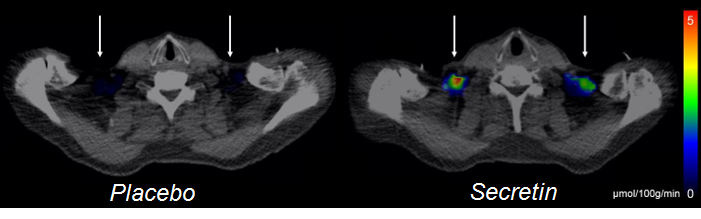– Secretin is a hormone secreted into blood circulation by the intestines, and it stimulates the production of peptic juices in the pancreas when we have meals. In our research, we discovered secretin receptors in the brown adipose tissue of healthy people, which suggested that secretin also affects brown fat. Secretin infusions not only increased glucose uptake in brown adipose tissue, but also elevated energy expenditure in the whole body, says Doctoral Candidate, Cardiologist Sanna Laurila from the University of Turku.