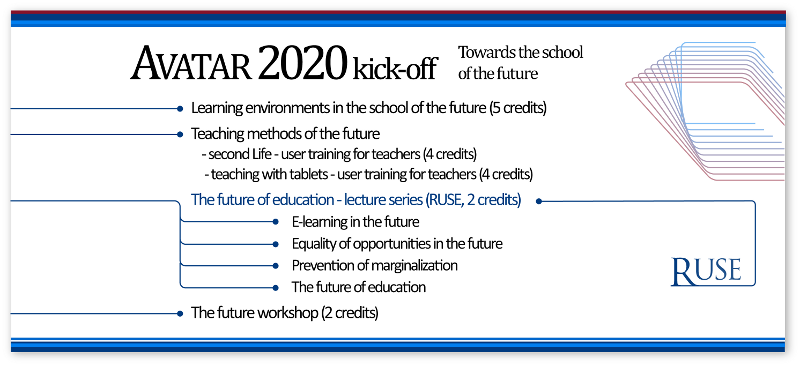AVATAR 2020 - towards the school of the future is a cooperation project with RUSE, Brahea Centre for Training and Development, Finland Futures Research Centre, Asiantuntijaosuuskunta Turun Norssi -services, Åbo Akademi, Finpeda and IlonaIT. The project offers academic continuing professional education for teachers and other educational actors. The aim is to support teachers' pedagogical competence in utilising information and communications technology.