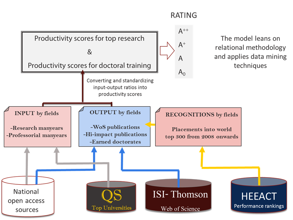 Since 2000s RUSE has been developing an input-output approach by fields (disciplines) for productivity analyses of research and research training. A motivation for the development was a need to know fill the gap left by international university rankings that do not take into account the inputs of universities when ranking universities in the international reputation markets.