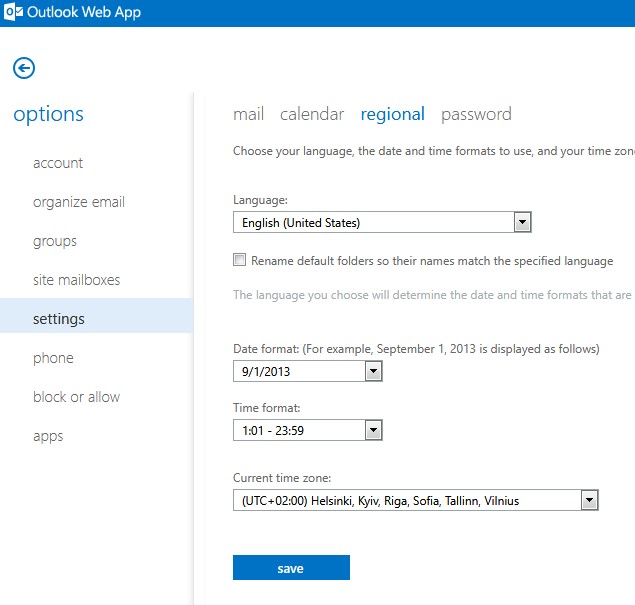 Please note that you have to have the correct time zone in Outlook for reservations to work. You can change the time zone from the Web Outlook "Options" menu (Gear symbol in the top right corner) :