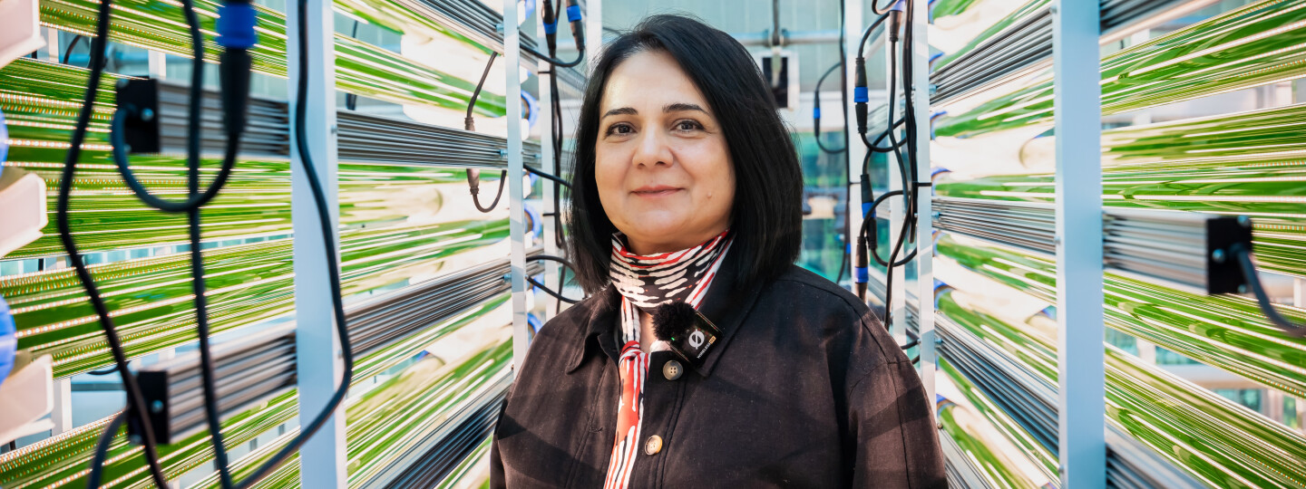 Molekulaarisen kasvibiologian professori Yagut Allahverdiyeva-Rinne kertoo videolla levätutkimushankkeista, joissa teollisuuden jätevedet muutetaan arvokkaaksi leväbiomassaksi.