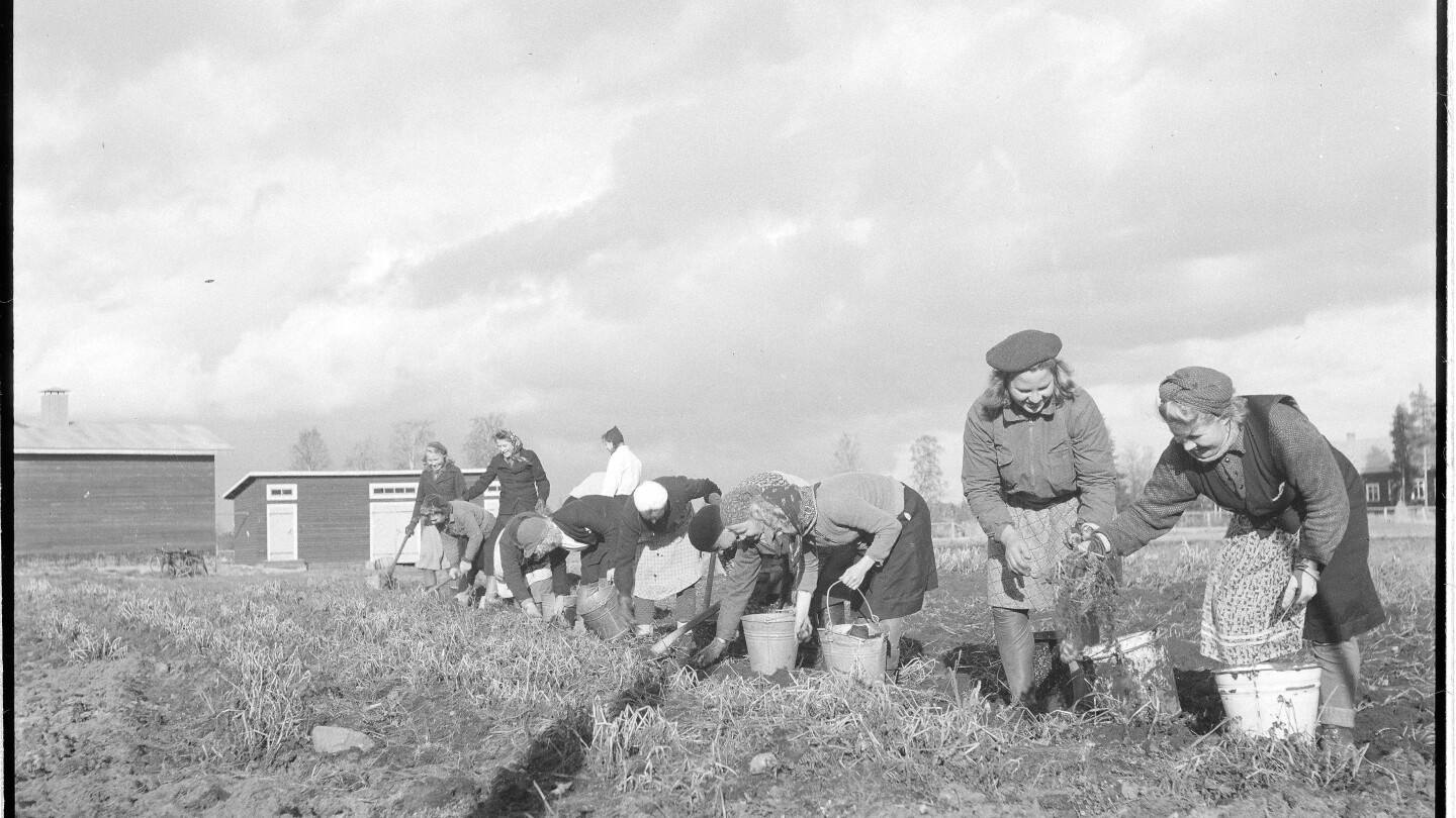 Siirtoväki perunannostossa. Lähde: SA-kuva. https://apps.utu.fi/media/tiedotteet/160565_159091.jpg