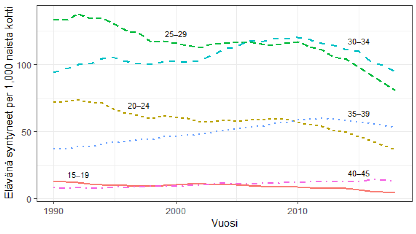 Vuoden 2010 jälkeen 30–39-vuotiaiden naisten lastensaanti kuitenkin väheni ensimmäistä kertaa sitten 1970-luvun. Samaan aikaan myös alle 30-vuotiaiden naisten lastensaanti väheni aiempaa nopeammin.