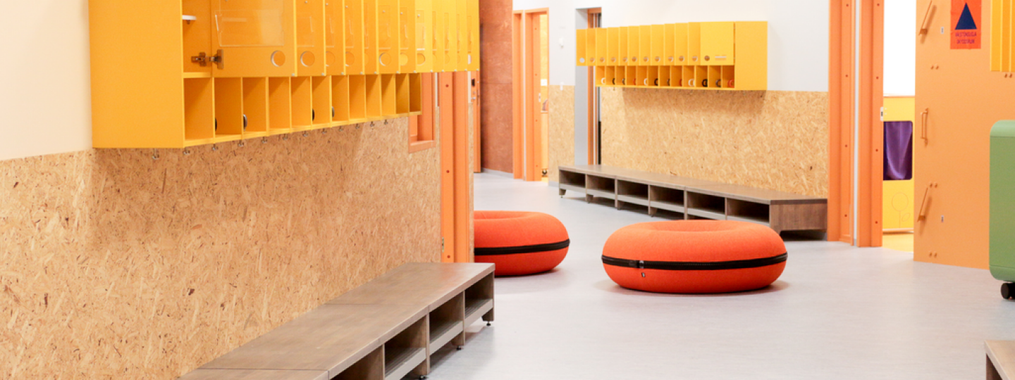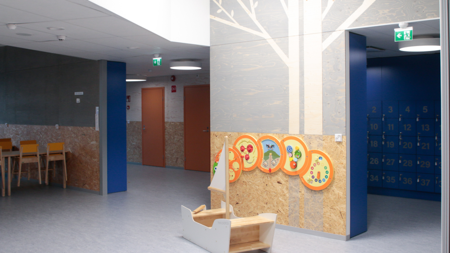 Pikkunorssin suunnittelussa on mietitty tarkasti, mikä tekee sujuvan ja oppivan arjen. Ruokasalissa on pieni leikkipiste vuoroaan odottaville.