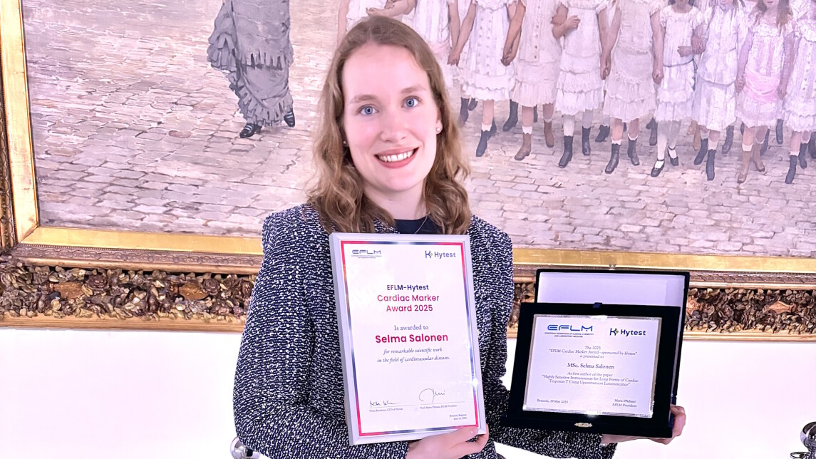 Euroopan kliinisen kemian ja laboratoriolääketieteen alan kattojärjestö myönsi Turun yliopiston bioteknologian laitoksella työskentelevälle väitöskirjatutkija Selma Saloselle EFLM Cardiac Marker Award -tiedepalkinnon. Tunnustus myönnettiin viime vuonna julkaistusta tutkimusartikkelista, jossa kehitettiin uudenlainen laboratoriotesti sydäninfarktidiagnostiikkaan.