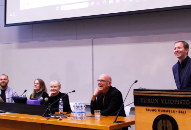 – Kukaan ei voi astua samaan virtaan kahta kertaa, mutta tiedämme jokien mutkittelusta paljon. Niinpä osastolla on kansallinen tutkimuksen lippulaiva hydrogeografian aihepiiristä. Tutkimme myös Amazonin eliömaantiedettä, kaupunki-ilmaston muutoksia, suurkaupunkien vilinää, digitaalisia paikkoja ja monenlaista muuttoliikettä. Toteutamme suuria kehityshankkeita eteläisessä Afrikassa. Turkulaisten maantieteilijöiden työkaluiksi käyvät niin satelliitit ja droonit kuin ihan tavallinen lyijykynä ja muistilehtiö, kertoo maantieteen professori Jussi Jauhiainen.