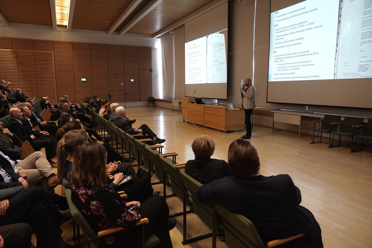 Turun kaupungin, Turun yliopiston ja Åbo Akademin yhteisen Turun kaupunkitutkimusohjelman 15-vuotisen taipaleen kunniaksi järjestettiin juhlaseminaari torstaina 16.1. Turun kaupunginteatterin viereisen Virastotalon auditorioon kerääntyikin sankka joukko väkeä niin muistelemaan mennyttä 15 vuotta kuin myös tarkastelemaan nykyhetkeä ja tulevaisuutta.