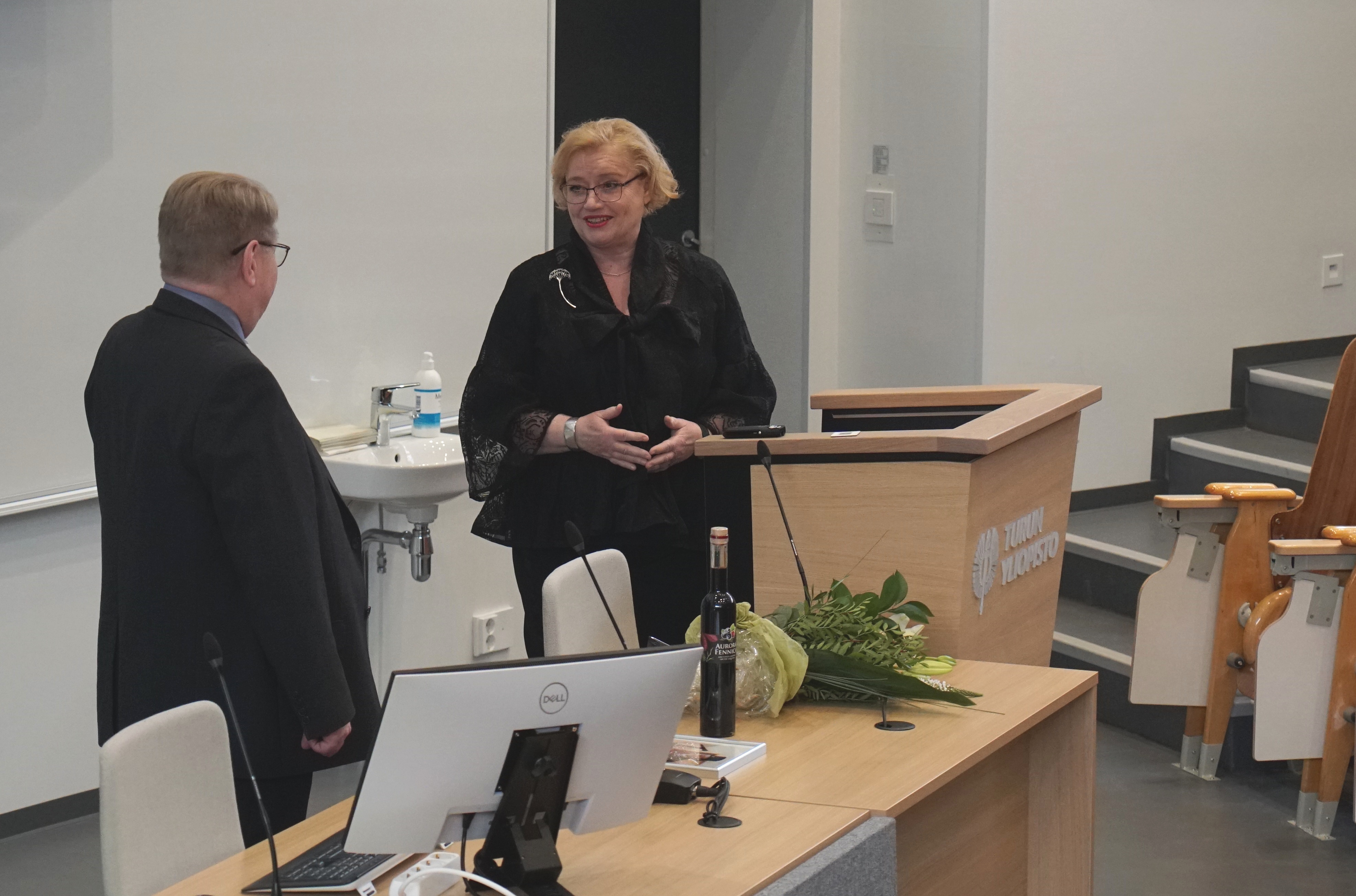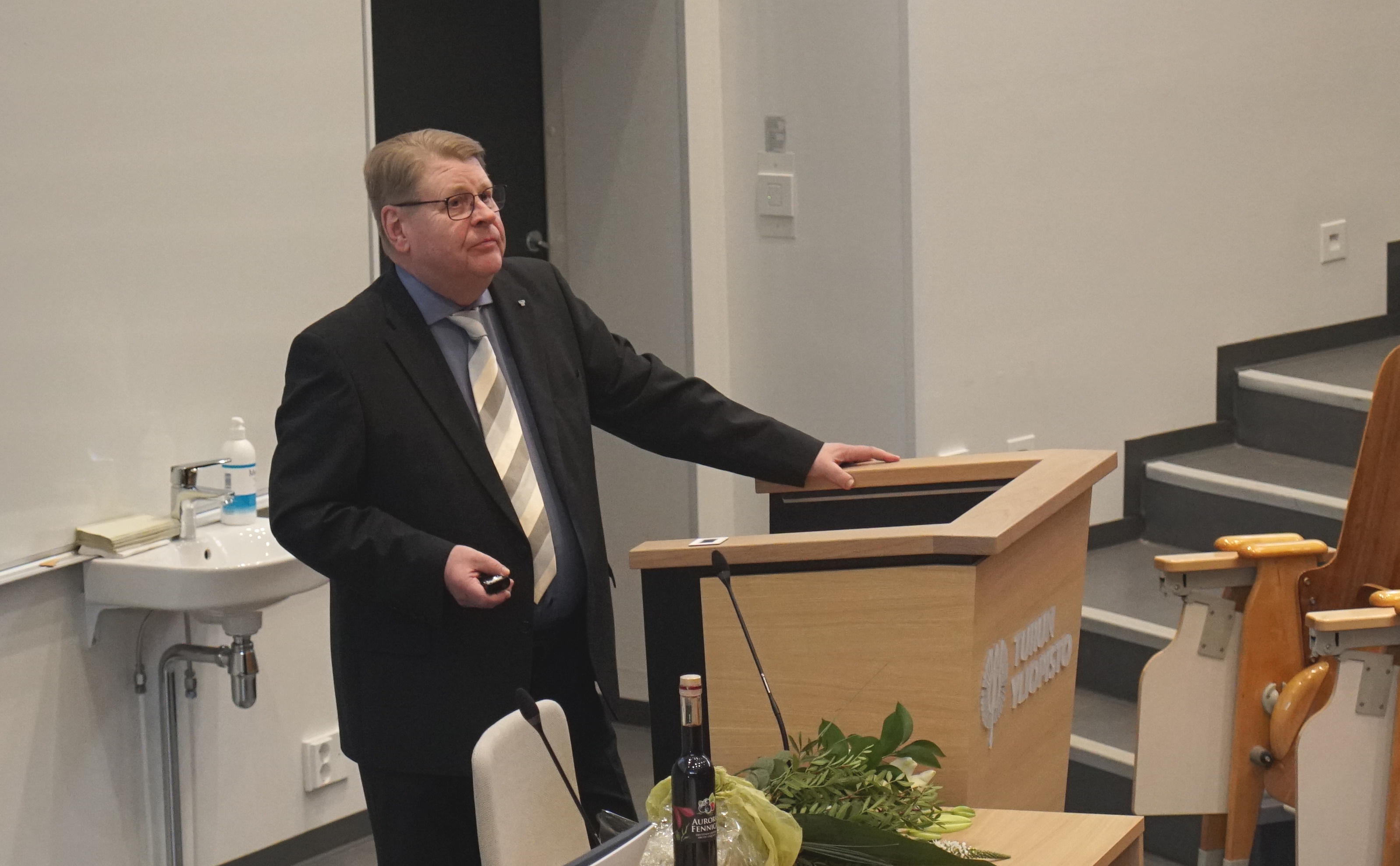 Seminaarissa Peltonen muisteli uraansa ja tutkimussaavutuksiaan. Tutkimuspositioiden lisäksi hän on myös mm. toiminut professoriliiton Turun osaston pitkäaikaisena jäsenenä ja Turun yliopiston yliopistokollegion puheenjohtajana vuosina 2022–2024.