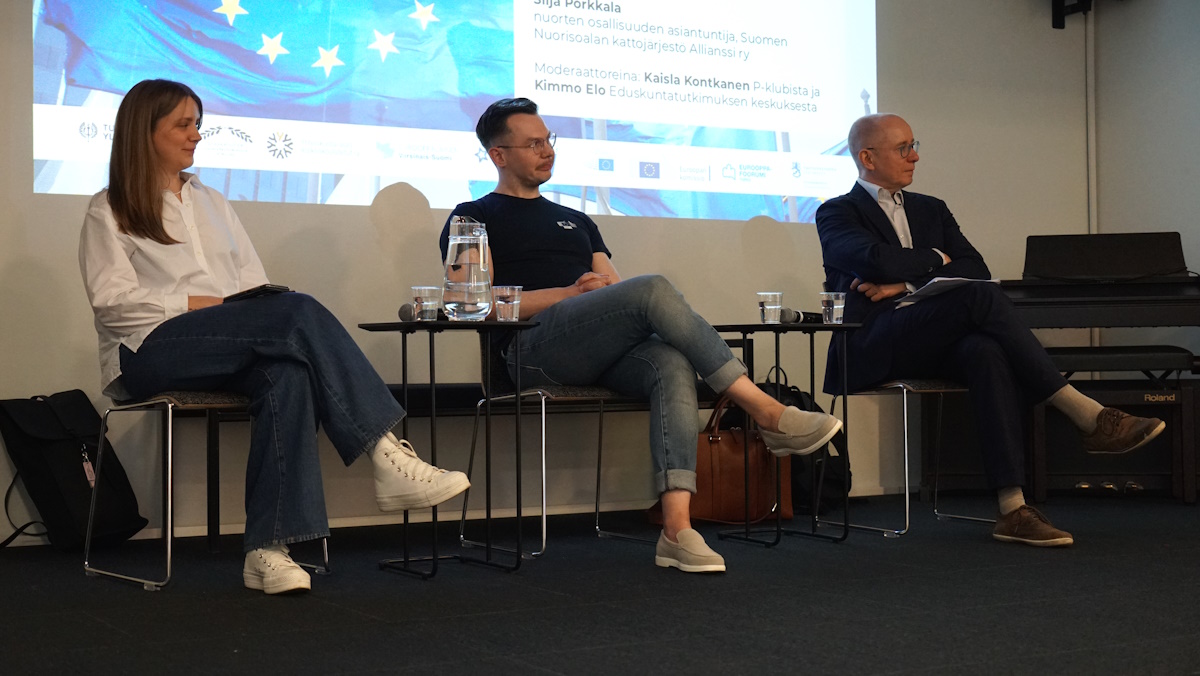 Tilaisuuden viimeisenä osiona oli paneelikeskustelu, jossa puhujat paneutuivat vaikuttamiseen EU:ssa ja EU:hun vaikuttajana. Mukana keskustelemassa olivat Aappo Pukarinen Euroopan komission Suomen-edustustosta, kv-asioiden päällikkö Markus Penttinen Akavasta ja nuorten osallisuuden asiantuntija Silja Porkkala Suomen Nuorioalan kattojärjestö Allianssi ry:stä. Keskustelua moderoivat Kaisla Kontkanen P-klubista ja Kimmo Elo Eduskuntatutkimuksen keskuksesta.