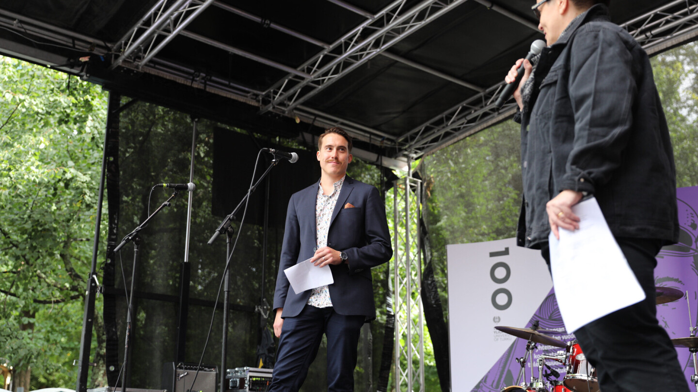 Sade väistyi sopivasti avajaiskarnevaalien ensimmäisen ohjelmanumeron tieltä, ja rehtori Jukka Kolan puhe saatiin kuulla aurinkoisissa tunnelmissa. Kola totesi, että 100-vuotias yliopisto on luova ja uudistuva organisaatio, ja sillä on suuri merkitys poikkeuksellisena, haastavanakin aikana.
