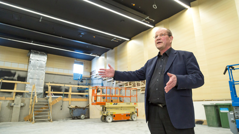 Veli-Matti Hakanen näkee jo uudistuvien tilojen mahdollisuudet. Auditoriosta rakentuu todellinen monitoimitila.