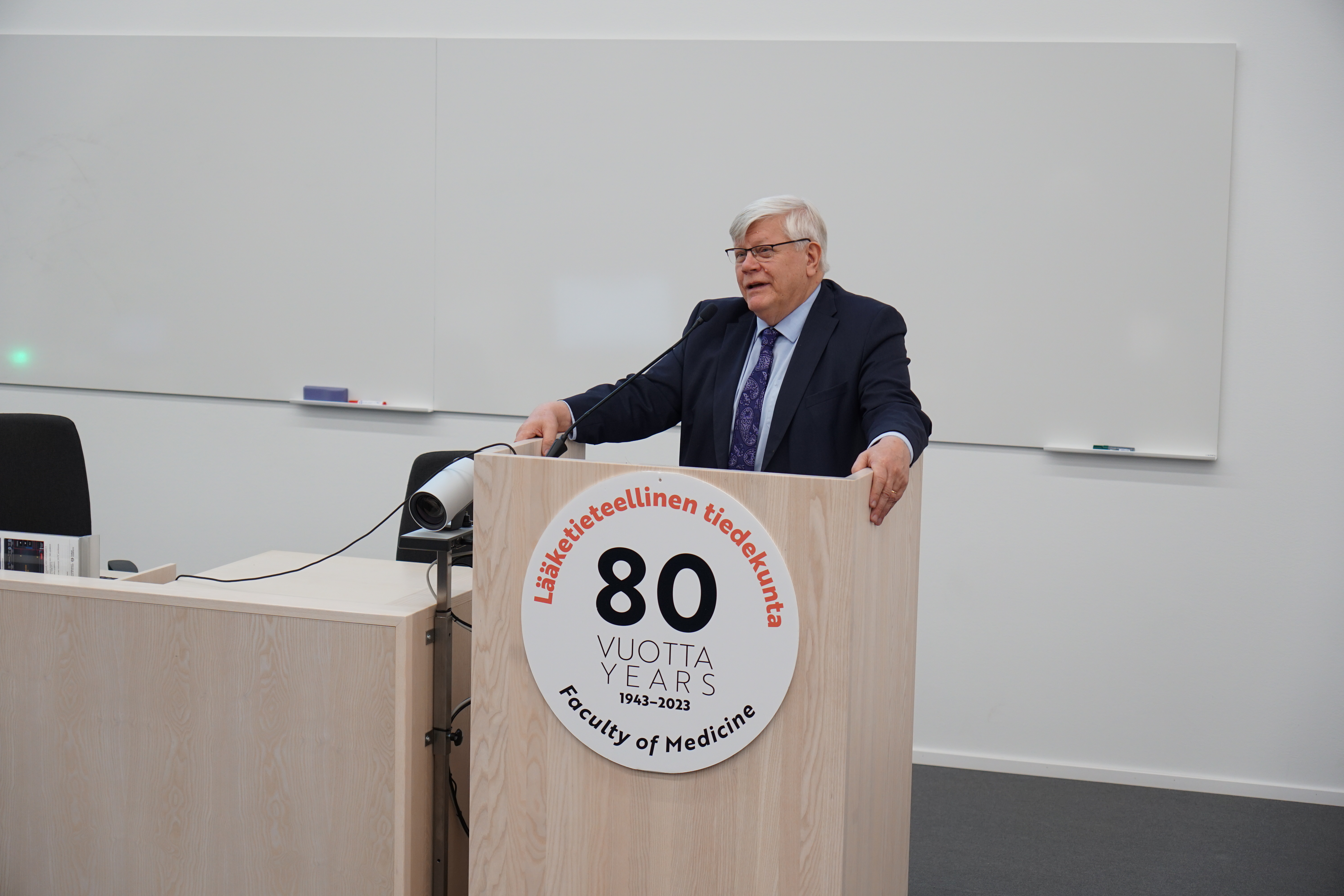 Yliopiston entinen rehtori, professori Kalervo Väänänen kävi läpi oppiaineen perustamisen historiaa sekä kehitystä, joka on muokannut laitoksen nykyiseen muotoonsa: solubiologian koulutusohjelmasta terveyden biotieteiden koulutusohjelmaksi ja lopulta biolääketieteen koulutusohjelmaksi. Tilaisuudessa kuultiin myös sanoja professori Lauri Pelliniemeltä, joka ajoi aktiivisesti oppiaineen perustamista vuonna 1996.