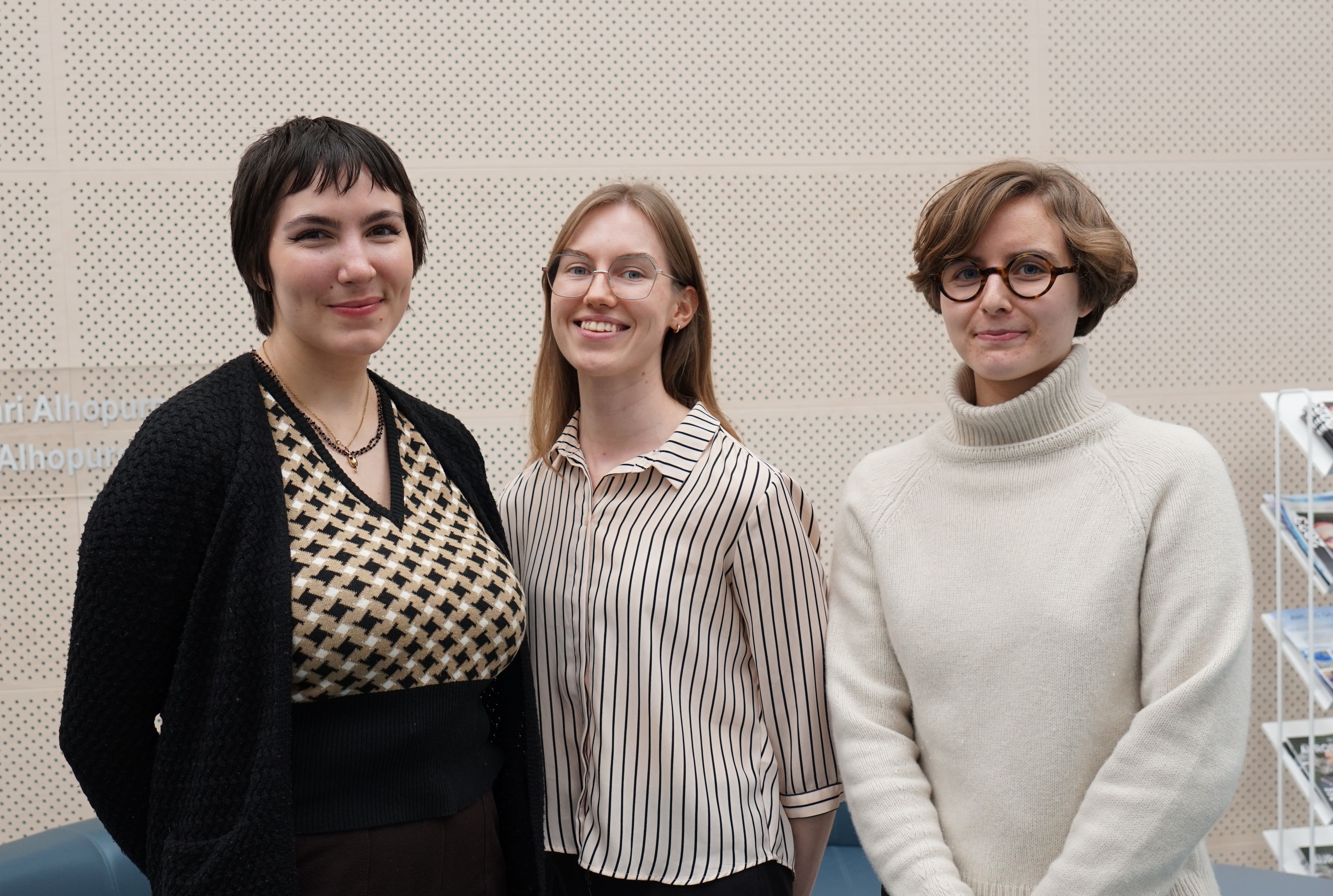 Opiskelijat Rilla Riitakallio (vas.), Aura Tuohisto-Kokko ja Maiju Rantamäki
