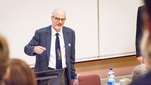 Professori Frederick Wasser esitelmöi 21. kerran järjestetyssä American Voices -seminaarissa.