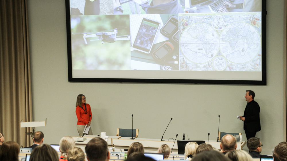 Maantieteen apulaisprofessori Niina Käyhkö keskusteli professori Juha Oksasen kanssa siitä, miten paikkatieto on muuttunut tärkeäksi osaksi yhteiskuntaa. Erilaiset kartoitusteknologiat kehittyvät jatkuvasti. Maanmittauslaitoksen paikkatietokeskuksessa työskentelevä Oksanen totesi, että paikkatietojen digitalisoituminen nostaa poikkitieteellisen vaatimustason korkealle.