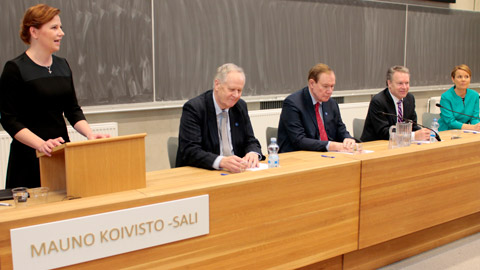 Eduskuntatutkimuksen keskuksessa aiemmin työskennellyt Sini Ruohonen johdatti ministeri Seppo Kääriäisen, entisen pääministerin Paavo Lipposen , Ilkka Kanervan ja keskuksen erikoistutkija Mari K. Niemen pohtimaan parlamentarismia.