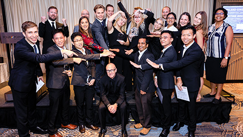Singapore Maritime Innovation Campin opiskelijat ja mentorit leirin päätöstilaisuudessa perjantaina 28.9.2018.