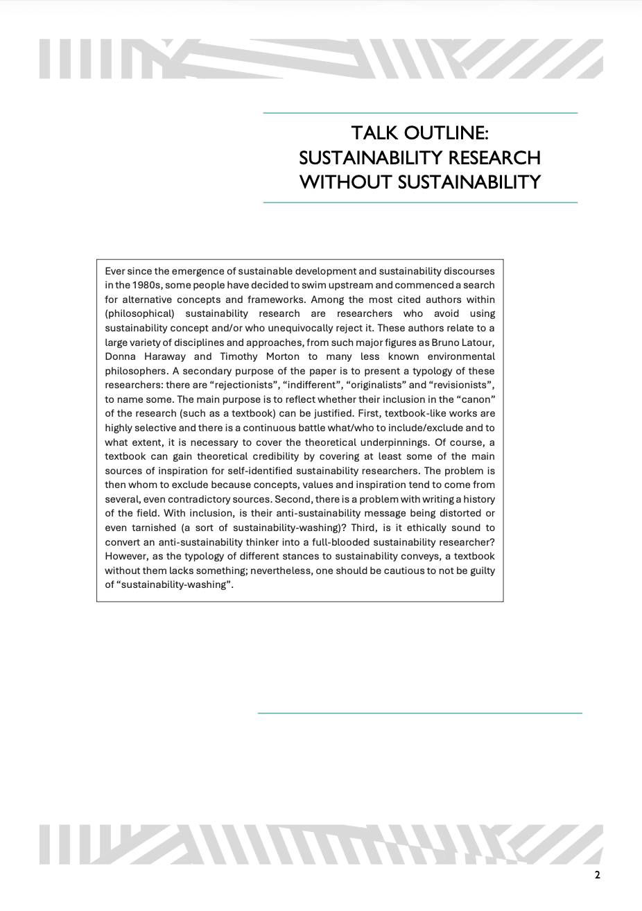 "Ever since the emergence of sustainable development and sustainability discourses in the 1980s, some people have decided to swim upstream and commenced a search for alternative concepts and frameworks. Among the most cited authors within (philosophical) sustainability research are researchers who avoid using sustainability concept and/or who unequivocally reject it. These authors relate to a large variety of disciplines and approaches, from such major figures as Bruno Latour, Donna Haraway and Timothy Morton to many less known environmental philosophers. A secondary purpose of the paper is to present a typology of these researchers: there are “rejectionists”, “indifferent”, “originalists” and “revisionists”, to name some. The main purpose is to reflect whether their inclusion in the “canon” of the research (such as a textbook) can be justified. First, textbook-like works are highly selective and there is a continuous battle what/who to include/exclude and to what extent, it is necessary to cover the theoretical underpinnings. Of course, a textbook can gain theoretical credibility by covering at least some of the main sources of inspiration for self-identified sustainability researchers. The problem is then whom to exclude because concepts, values and inspiration tend to come from several, even contradictory sources. Second, there is a problem with writing a history of the field. With inclusion, is their anti-sustainability message being distorted or even tarnished (a sort of sustainability-washing)? Third, is it ethically sound to convert an anti-sustainability thinker into a full-blooded sustainability researcher? However, as the typology of different stances to sustainability conveys, a textbook without them lacks something; nevertheless, one should be cautious to not be guilty of “sustainability-washing.”