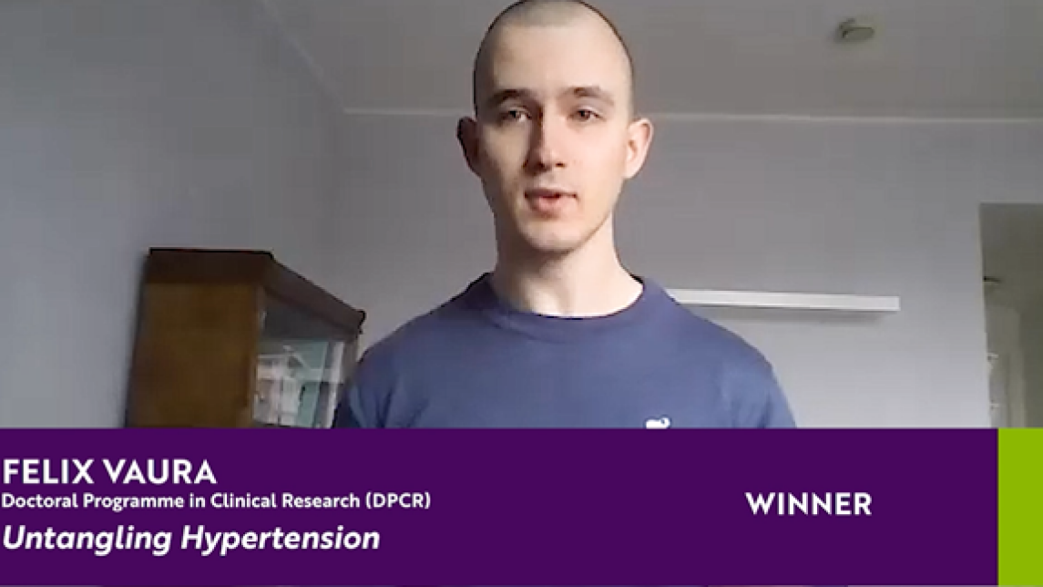 Felix Vaura kertoi kilpailussa kolmessa minuutissa, miten hän tutkimustyöllään etsii keinoja kehittää korkean verenpaineen hoitoa. Tuomaristo kiitti häntä erityisen havainnollisesta kuvasta, jota Vaura osasi hyödyntää esityksensä tukena niin, että kuulijan oli helppo ymmärtää sanoma. Kiitosta sai myös esityksellinen tieteellinen ansio.