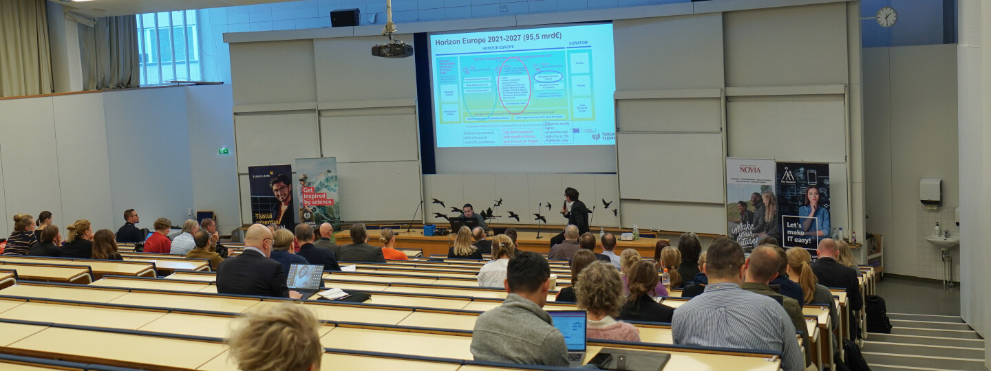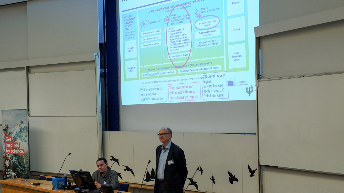 Tilaisuuden avasi Turun yliopiston tutkimuksen vararehtori Kalle-Antti Suominen, joka puhui Horisontti Eurooppa -ohjelman merkityksellisyydestä:
