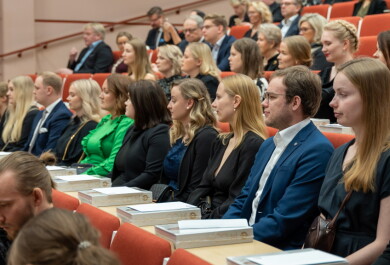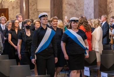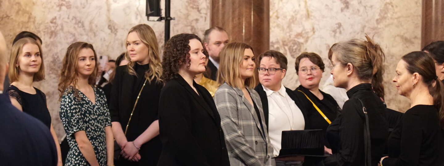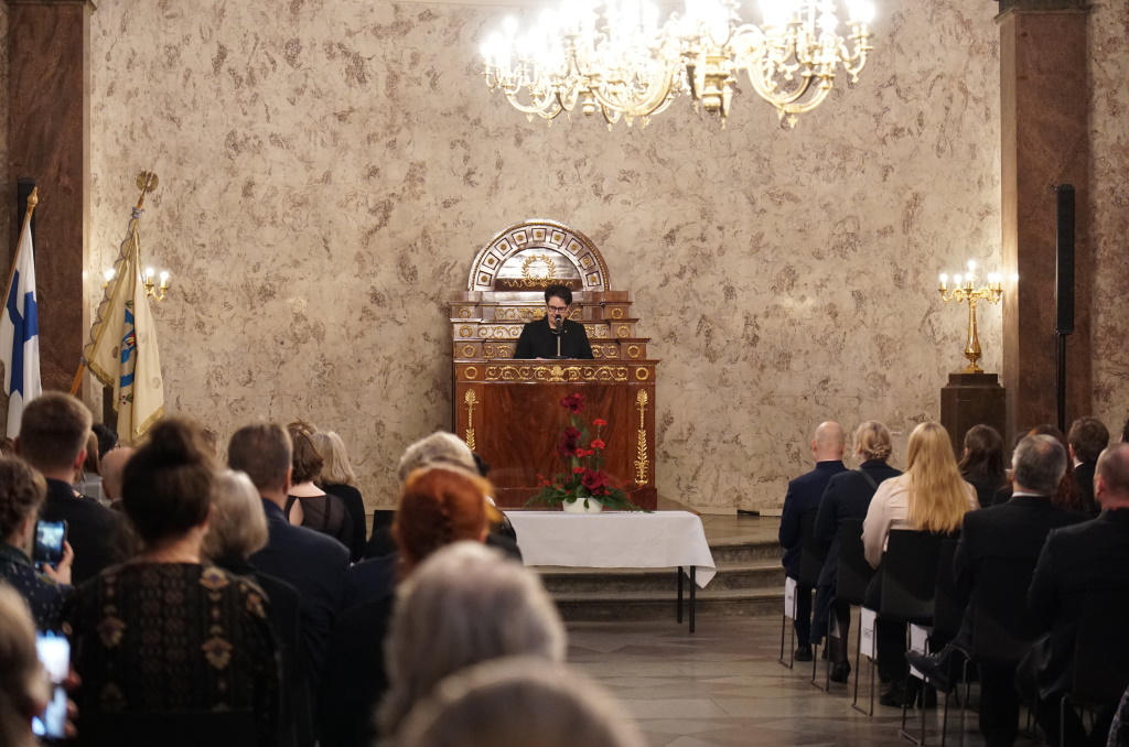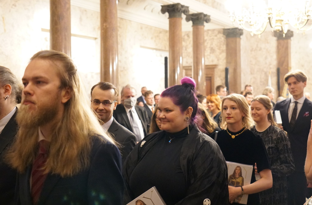 Publiikissa kuultiin myös alumni Selina Kiiskisen tervehdys ja vastavalmistuneen maisterin Otto Tarkan puhe.