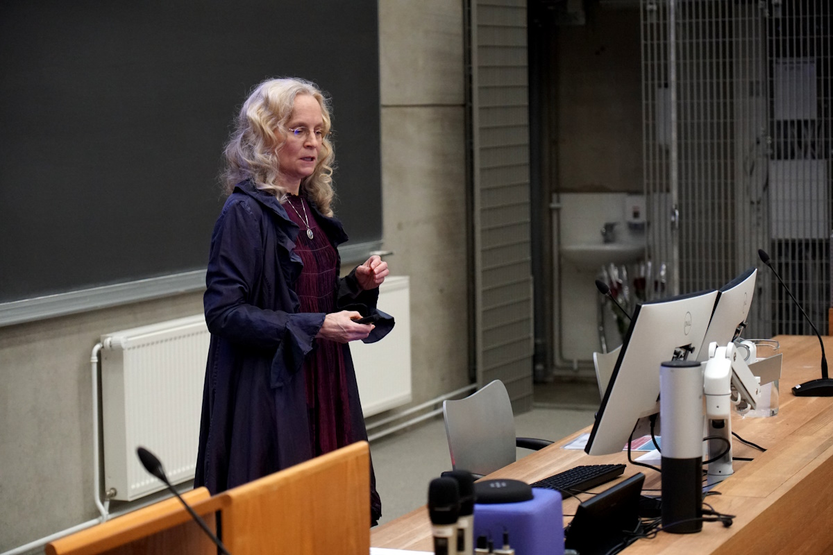 Aamupäivän osuuden seminaarista päätti geriatrian professori ja ylilääkäri Maria Nuotio, joka kertoi geriatrian haasteista ja logopediayhteistyön mahdollisuuksista. Geriatria on lääketieteen erikoisala, joka keskittyy ikääntyneiden ihmisten terveyden, toimintakyvyn, elämänlaadun ja itsenäisyyden parantamiseen. Useimmat potilaat ovat yli 65–vuotiaita.