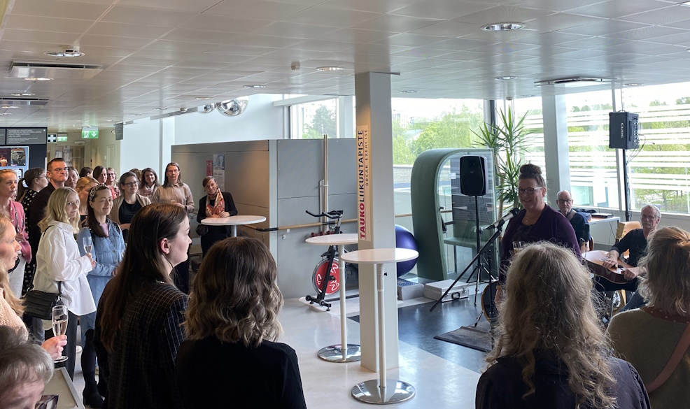 Juhlapäivä huipentui cocktailtilaisuuteen Publicum-rakennuksen toisen kerroksen aulassa.