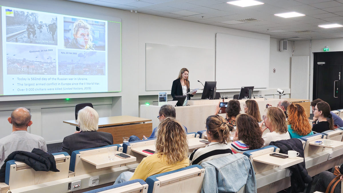 Ukrainan sodalla on ollut suuri vaikutus maan nuorten hyvinvointiin. Lastenpsykiatrian tutkimuskeskuksen vieraileva professori Olga Osokina Donetskin yliopistosta puhui tilaisuudessa Lastenpsykiatrian tutkimuskeskuksen johtamasta hankkeesta, jossa tarkastellaan sodan vaikutuksia lasten ja nuorten mielenterveyteen.