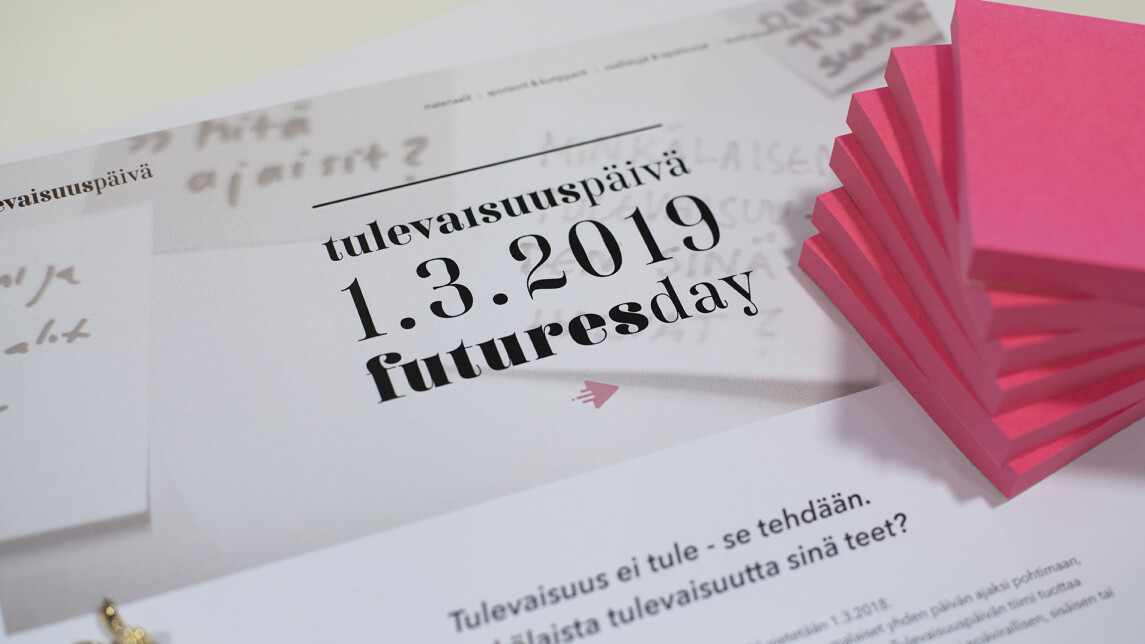 Tulevaisuus otetaan usein itsestäänselvyytenä ja pidemmän tähtäimen tulevaisuuspohdinnat jäävät helposti kiireellisempien asioiden jalkoihin. Meillä on harvoin aikaa pysähtyä miettimään, millaiset käsitykset tulevaisuudesta oikeastaan ohjaavat toimintaamme nykyhetkessä. Ensimmäistä kertaa 1.3.2019 vietettävä koko Suomen Tulevaisuuspäivä kutsuu suomalaisia pysähtymään tulevaisuuden äärelle ja tarjoaa valmiit materiaalit tulevaisuudesta keskusteluun.