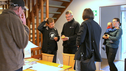 Kevon asemanjohtaja Otso Suominen (kesk.) pääsi vastaamaan kävijöiden kiperiin kysymyksiin. Yksi jatkuvasti kysymyksiä aiheuttava asia on Kevon tutkimuslaitoksen ja Kevon luonnonpuiston välinen suhde.