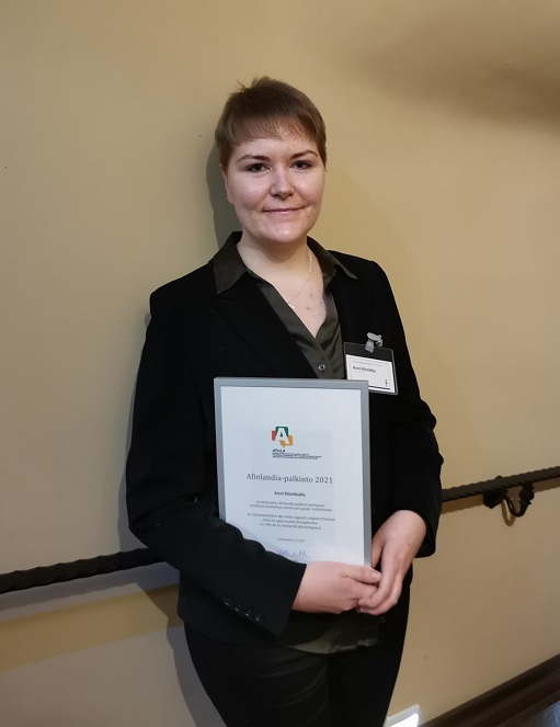 Suomen soveltavan kielitieteen yhdistys - Finländska föreningen för tillämpad språkvetenskap (AFinLA ry.) palkitsee vuosittain yhden ansiokkaan maisterintutkielman. Tämän vuoden Afinlandia -palkinnon sai Turun yliopiston Anni Hintikka. Palkitun tutkielman lisäksi AFinLA jakaa kaksi kunniamainintaa ansiokkaille Pro gradu -töille, joista toinen myönnettiin Turun yliopiston Mikko Kukkoselle.