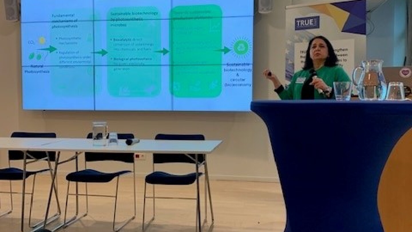 Tapahtumaan kutsutut puhujat korostivat esityksissään tutkimusorganisaatioiden roolia eurooppalaisten kumppanuusohjelmien edistäjinä. Puhujat kertoivat myös kohtaamistaan pullonkauloista ja tulevaisuuden haasteista. Turun yliopiston molekulaarisen kasvibiologian professori Yagut Allahverdiyeva-Rinne esitteli puheenvuorossaan mahdollisuuksia hyödyntää aurinkoenergian avulla tuotettuja polttoaineita kiertotalouteen pohjaavien keinojen avulla.