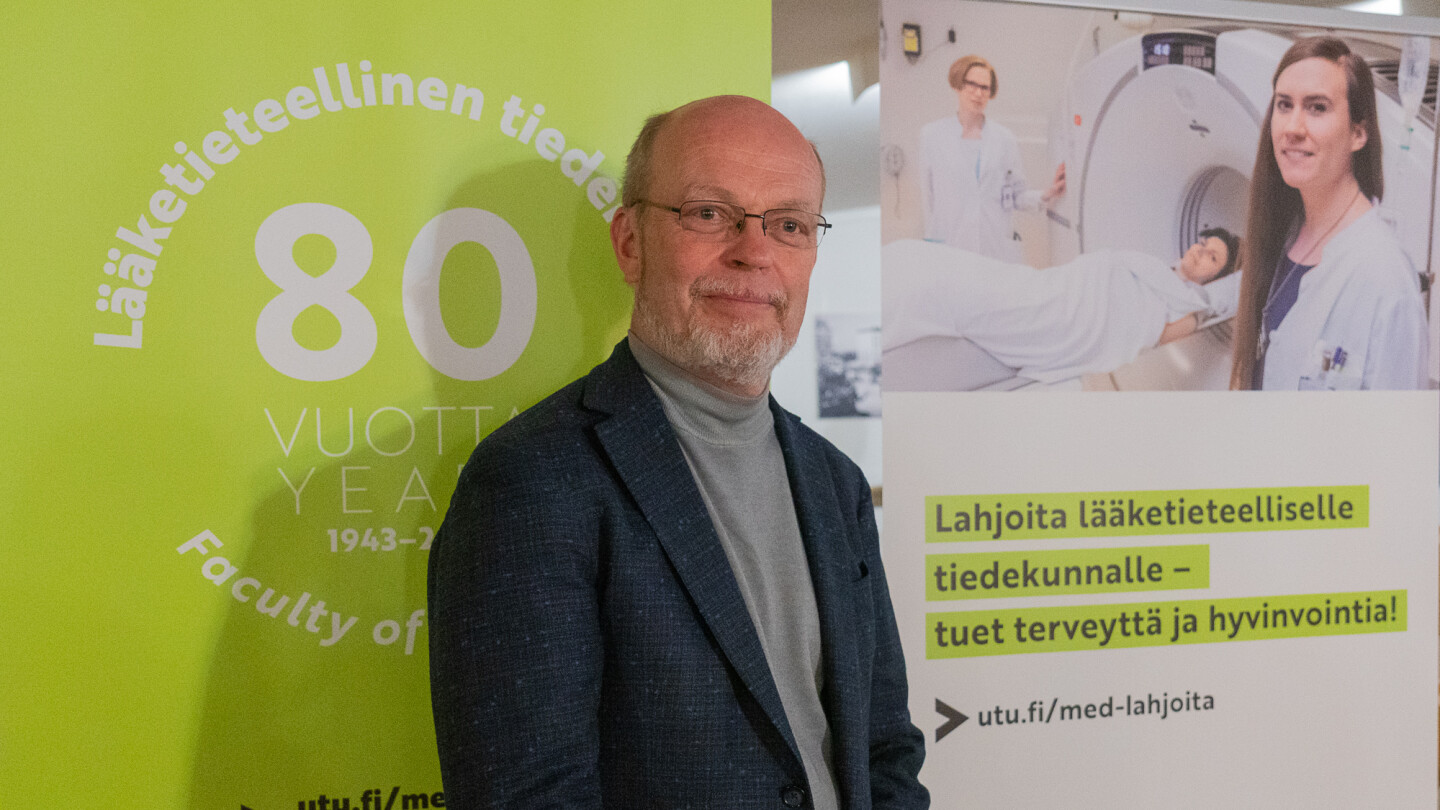 Dekaani Pekka Hänninen iloitsi lääketieteellisen tiedekunnan ja Turun filharmonisen orkesterin yhteistyöstä.