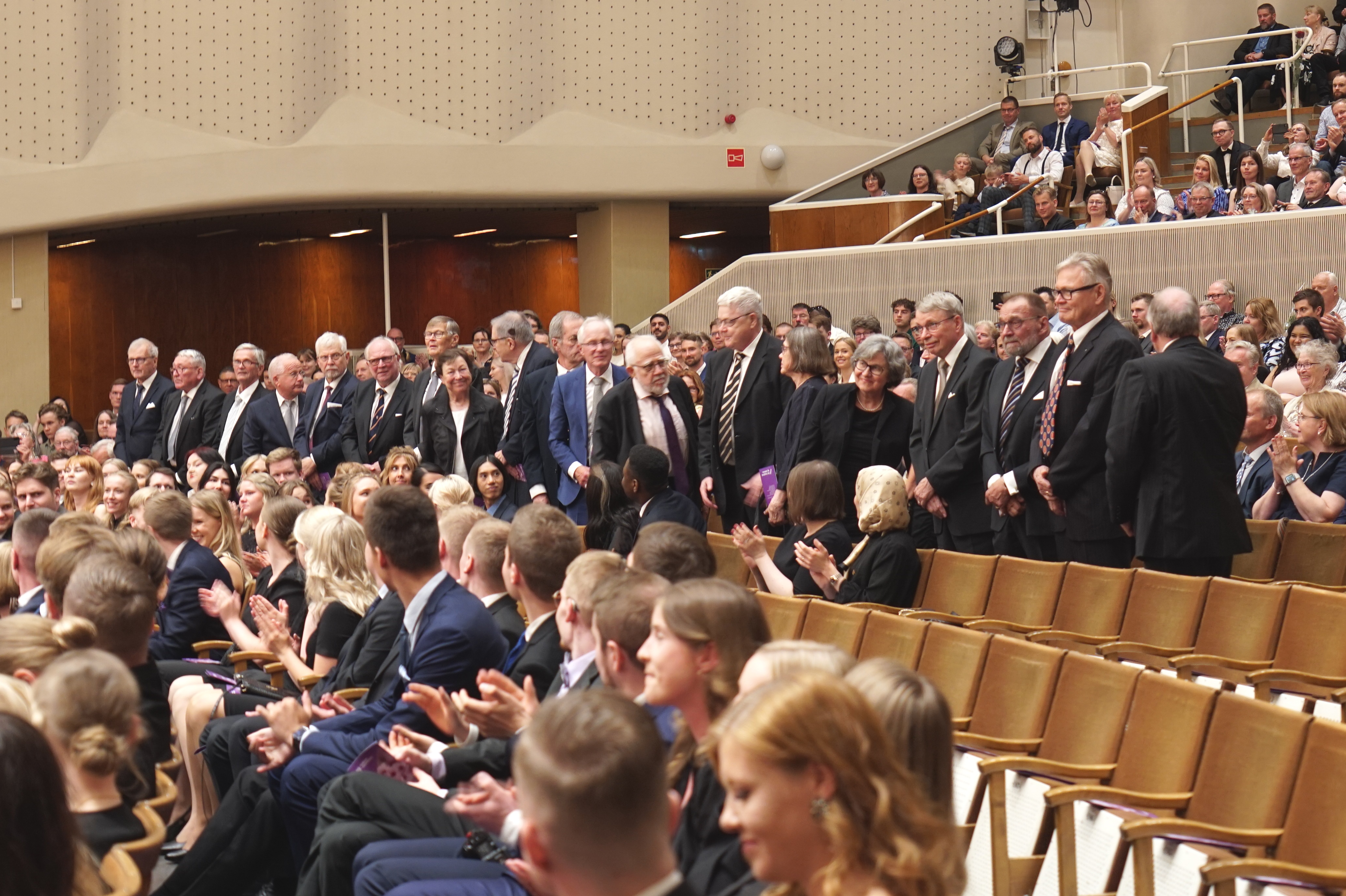 Lääketieteellisen tiedekunnan publiikissa perjantaina 7.6.2024 juhlistettiin valmistuneita lääketieteen lisensiaatteja, hammaslääketieteen lisensiaatteja, terveystieteiden maistereita ja filosofian maistereita sekä todistettiin lääkärin ja hammaslääkärin valatilaisuutta. Publiikkiin oli kutsuttu vieraiksi myös 50 vuotta sitten valmistuneita alumneja.