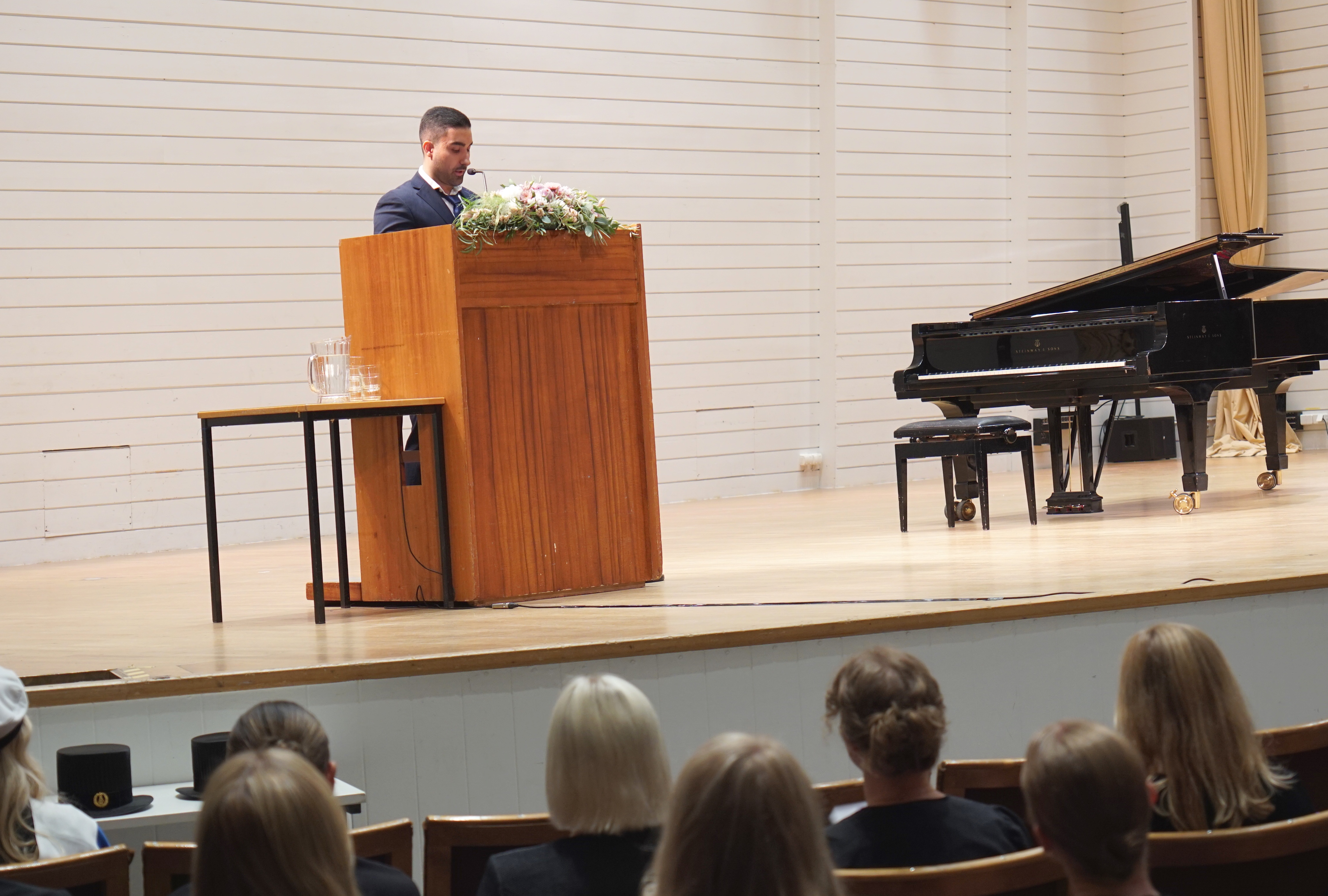 Tilaisuuden päätteeksi valmistuneiden edustajat pitivät myös valmistuneiden puheenvuorot.
