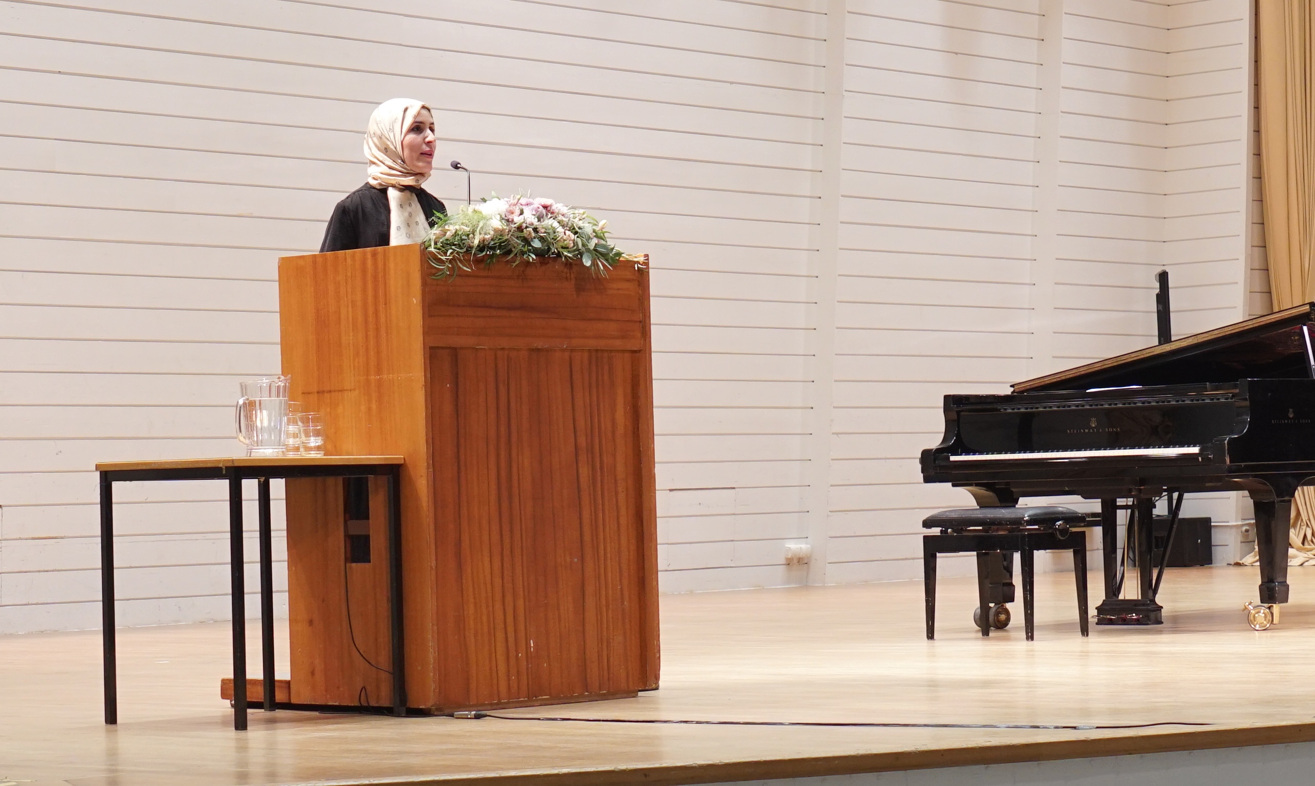 MSc Enas Mangoush piti valmistuneiden puheen kansainvälisestä maisteriohjelmasta valmistuneille filosofian maistereille.