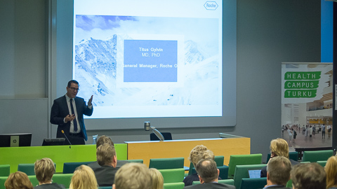 Turun alue onkin lääketeollisuuden ja biotekniikan huipulla. Tämä on selvää myös Rochelle, joka jo tekee yhteistyötä paikallisten toimijoiden kuten Auria Biopankin kanssa. Roche Oy:n toimitusjohtaja Titus Gylvin vaikuttuikin Terveyskampuksen toiminnasta ja infrastruktuurista.