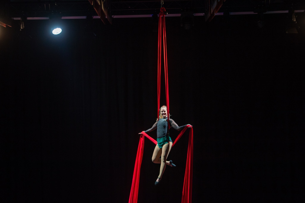 Osana Kulttuurikampus Turun esittäytymistapahtumaa katsottiin ja koettiin myös taide-esityksiä. Lavalla ilma-akrobaatti Linda Vuorio.