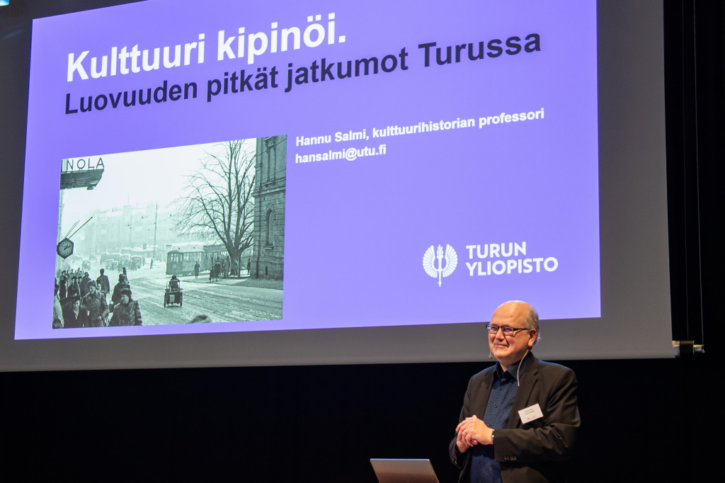 Turun yliopiston kulttuurihistorian professori Hannu Salmi kertoi luovuuden pitkistä jatkumoista kulttuurikaupunki Turussa.