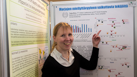 Niva esitteli tutkimustuloksiaan biokemian ja elintarvikekemian laitoksen Nuoret tutkijat -tapahtumassa. Nuorten tutkijoiden tutkimusjulisteet ovat esillä Arcanumin aulassa 19.–22.3.2013, ja tapahtumassa voi käydä kuuntelemassa myös päivittäisiä seminaariesityksiä.