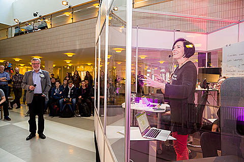 Vuoden turkulainen dosentti Mari Sandell ratkoi yleisön tiedekysymyksiä syyskuussa Tutkijoiden yön yhteydessä järjestetyssä Science Battlessa, jossa tutkijaryhmät ottivat mittaa toisistaan leikkimielisessä kilpailussa