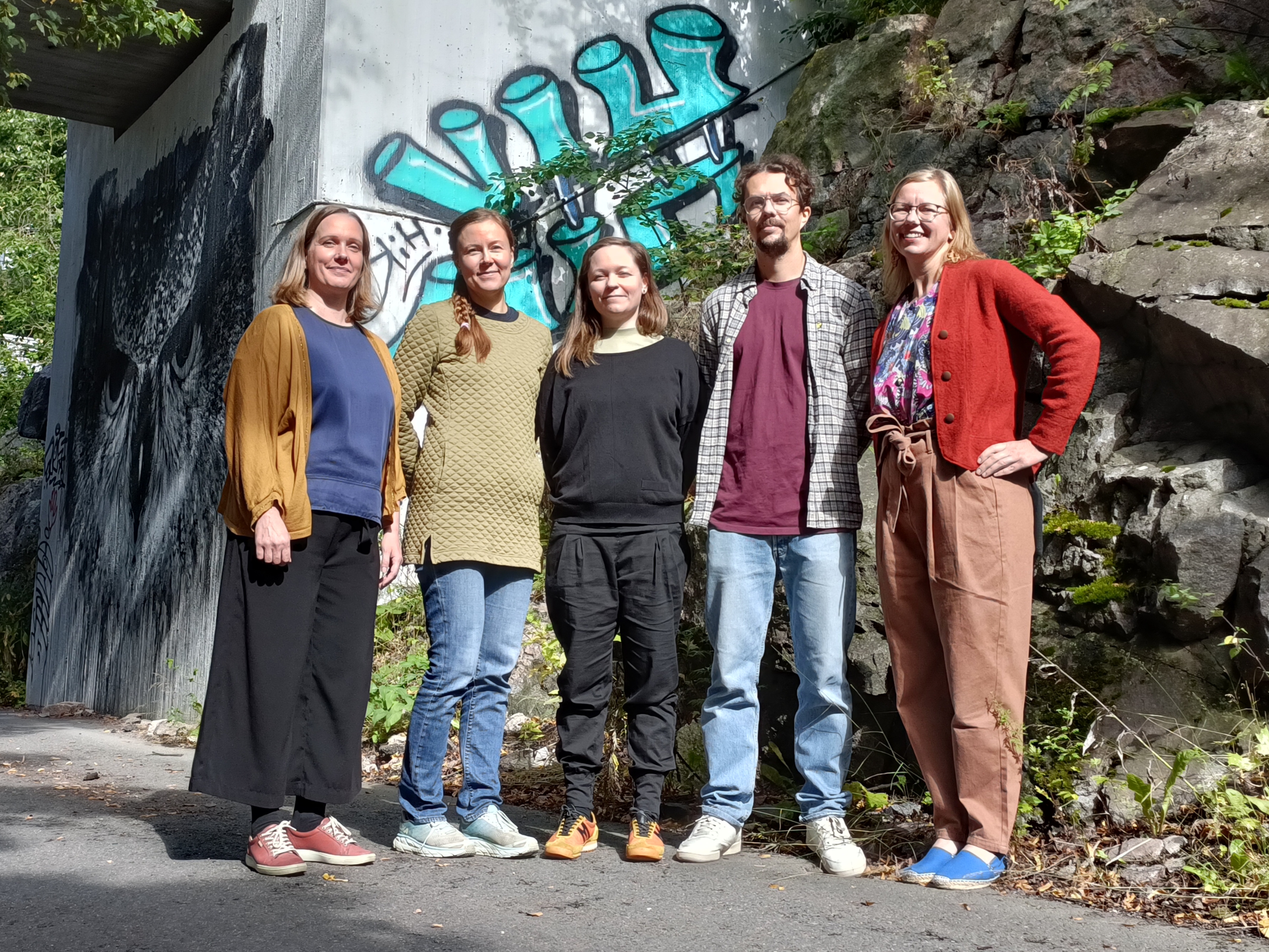 Kuvassa vasemmalta oikealle Elsa Saarikkomäki, Malin Fransberg, Helena Huhta, Antti Kivijärvi ja Sofia Laine. Kuvasta puuttuu Markus Kaakinen.