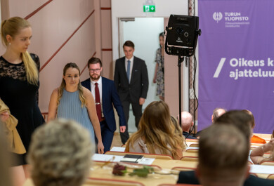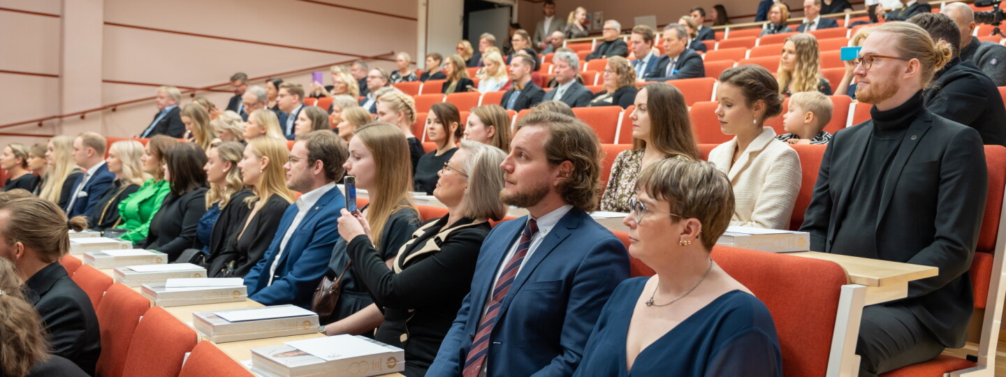 Juhlakansaa oikeustieteellisen tiedekunnan publiikissa 9.12.2022. Kuva: Minna Nerg / Turun yliopisto.