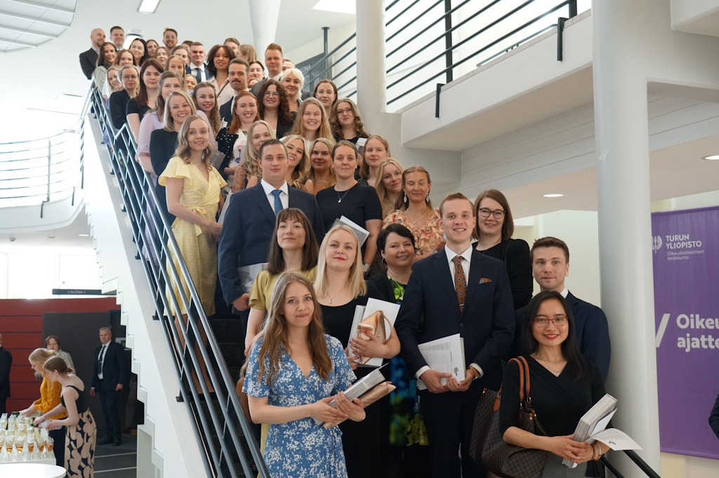 Vastavalmistuneet oikeustieteen maisterit yhteiskuvassa. Kuvat: Minna Nerg / Turun yliopisto.
