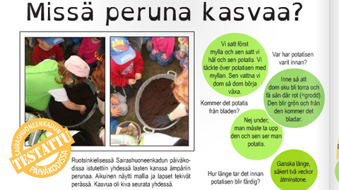 Tuore Perunapuuhaa lasten kanssa -julkaisu innostaa perheitä ja päivähoitoväkeä kasvattamaan ja käyttämään perunoita. Opas syntyi Turun yliopiston funktionaalisten elintarvikkeiden kehittämiskeskuksen ja Turun päiväkotien yhteistyönä. Opasta jaetaan Turun päiväkodeille ja se on vapaasti ladattavissa netistä.