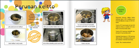 Perunapuuhaa lasten kanssa -oppaasta löytyvät muun muassa kuvalliset ohjeet perunan keittämiseen, kuorimiseen ja perunamuusin tekoon, joiden avulla perheen pienimmätkin voivat tutustua perunaan.